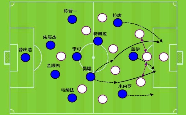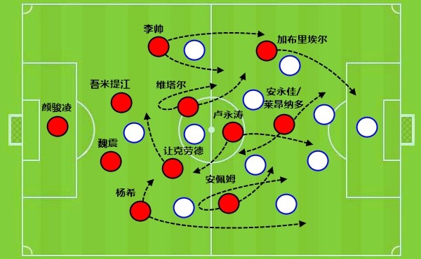 过去几年的中超,上海海港和上海申花争夺冠军是主旋律。不过新赛季的中超,海港-5分起步,申花则拿到了队史第三张扣分单,也是比前2次更多的-10分,这两支球队还会是新赛季中超的第一和第二吗? 尤其是对于申花来讲,球队自2014年起,已经连续12年中超排名在上海海港之后,这第13个年头,早早就敲定新外援的申花,会比最后时刻拿下梅伦多,更换安佩姆的海港,打出一个更好的开局吗? 01. 边锋成群的上海海港:中锋没力量要靠中场补控球 a. 超级杯之败:暴露球队两大缺陷 作为过去三年的中超三连冠霸主,上海海港在冬窗做出了一个有些让人吃惊的决定,那就是用新的外援边锋安佩姆取代前腰位置的梅伦多,后者不报名新赛季中超联赛,留队备战下半年的亚冠。 上赛季上海海港在夏窗之后反弹,就是梅伦多入队后带来了更好的中场控球,让穆斯卡特的进攻思路可以施展开来。 需要注意到的是,本赛季中超各队冬窗投入明确提升,战斗力都上了一个台阶。上海海港继续坚持慢速控球的打法,对于一名崇尚进攻的主帅来讲,终究不是穆斯卡特所希望看到的。 主打进攻的教练,最终的追求还是要快速的攻防转换。低速控球被证明更多时候是一种无奈和妥协,如果持续下去,也会是一名进攻教练走向末路的信号。所以穆斯卡特主动求变,也是一种勇气。 其实从哈维尔开始,到穆斯卡特带队的过去2年,上海海港赢下中超三连冠,但其实打得是不一样的战术与进攻节奏,球队从没停止过去尝试改变。 但是罗马不是一天建成的,改变从来不是一蹴而就。超级杯赛场是安佩姆来到上海海港后的初次亮相,距离他第一次参与球队训练也就4天左右的时间,球队的整体性还无从谈起,反倒是暴露出更多的结构性缺陷。 首先安佩姆与加布里埃尔作为两名强力边锋,彼此之间缺少直接的联系,如果两人中的一个不能频繁内收联系另一侧,那就需要中锋或者说中轴线有更强势的对抗力量或者是控球能力,来稳住球权。不过无论是当下先发的安永佳,还是之后伤愈过来的莱昂纳多,都不是真正的柱式中锋,不可能起到真正的支点作用。 就像是这一次的反击,当卢永涛直塞找到安永佳时,加布里埃尔快速前插作为箭头,这时候就需要中锋拿得住球完成下一步的输送,可惜安永佳被拉莫斯犯规。 虽然后者得到一张黄牌,但上海海港的反击就这样结束了。或许等到莱昂纳多复出后,他有一脚直塞的能力,有助于跟两侧边锋形成联系。 对于上海海港来讲,还有一个问题就是球队的中场没有了梅伦多之后,谁会是维塔尔和让克劳德身边的搭档。 新赛季头2场亚冠和超级杯上,卢永涛都获得了先发。不过这名中场球员的控球技术和传球能力并不够好,他擅长对抗和跑动,可以弥补球队防守端的缺陷,却无法在进攻端做好接应和串联工作。 维塔尔作为上海海港的中场组织核心,他的控球能力是没有问题的,这一次在对方多人逼抢下可以从容控球转向也说明了这一点。 但是维塔尔传球给到相对空位的卢永涛,后者持球推进几步后没能转向分球给到远端,而是继续传近端陷入对方包围圈就成了问题。导致球在倒脚后,再一次回到靠后的维塔尔脚下。 维塔尔因为力量和速度上的缺陷,他在过中圈时需要跟队友撞墙配合,需要他在吸引防守后分球,队友能够把球转向更开阔的区域,这些工作,让克劳德不如上赛季的茹萨,卢永涛更是弱项,这成为了一个不小的问题。 b. 相信穆帅的训练质量:无球移动带来化学反应 卢永涛的问题一方面跟技术能力有关,另外一方面也跟整体的移动到位率有关。对战北京国安的超级杯先发里,安佩姆和杨希都是入队不久,魏震、吾米提江、加布里埃尔都错过了一整个冬训,再加上新入队的让克劳德、卢永涛和安永佳,整体移动不合拍是致命伤。 毕竟过去2个赛季,穆斯卡特最强的一点就是让上海海港的无球移动高于中超水准,这一点也是刘若钒这样的技术型球员在其他球队踢不好,来到上海海港后大放异彩的原因。 新赛季除了期待穆斯卡特在训练中成功“洗脑”球员,我们应该还会看到维塔尔相对前顶靠向中圈,安佩姆更多回撤或者内收中场参与控球,莱昂纳多成为准前腰送出直塞,带来边路优势的放大。 也有很多球迷会担心在茹萨离开后,让克劳德的传球水准要低不少,会让上海海港遭遇对方更凶狠的高位逼抢。 不过需要注意的是,本赛季的上海海港,因为杨希和让克劳德的单兵防守能力强于上赛季的配置,同时卢永涛带来更多的对抗和防守到位率,会让上海海港的后场拥有更多的抗击打能力。 这样一来,对方高位逼抢一旦失败,海港前场的外援双边锋有能力给对手惩罚。相比于因为缺少力量型中锋,导致球队阵地战得分不靠谱,被对手高位逼抢,一旦能够传出来,或许反倒是让海港有了更多反击得分的可能性。 另外武磊伤愈归来,他和莱昂纳多如何更好地分配出场时间,武磊将会扮演一个什么样的角色,都是穆斯卡特需要给出的答案。 如果能够处理好锋线的搭档选择,本赛季的上海海港的进攻会比上赛季更加锐利。 c. 本土边锋群:应该如何定位 对于上海海港来说,球队接下去有一个很现实的问题,就是前场的年轻人在双外援边锋身边,能够得到多少机会。 从赛季头3场“热身赛”看,刘祝润甚至有可能出现在锋线顶端,因为他有更好的冲击力,也能随时拉边,让加布里埃尔成为冲禁区的箭头。 李新翔从上赛